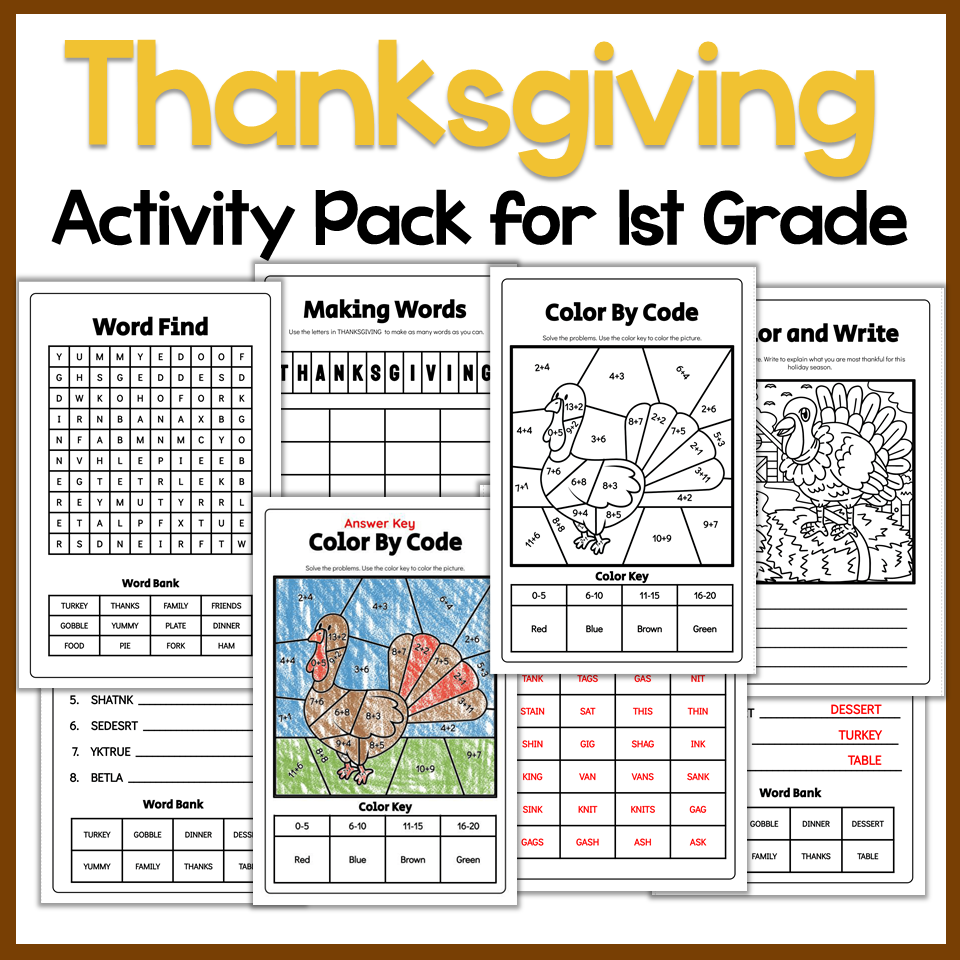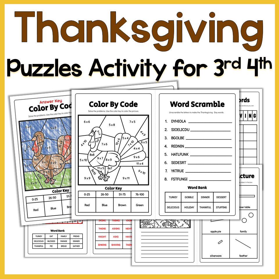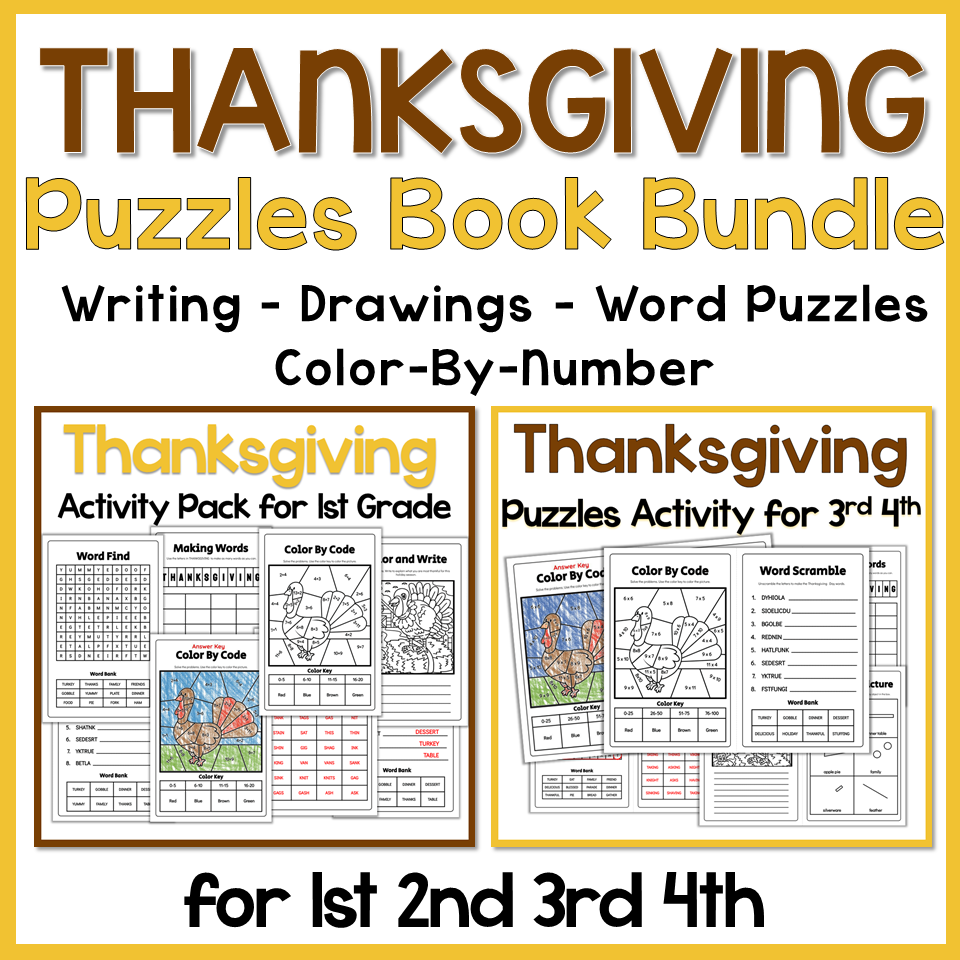 • Thanksgiving Puzzle Book for 3rd and 4th Grade: A variety of age-appropriate puzzles, from word scrambles to color-by-number activities, designed to challenge older students while keeping the holiday spirit alive.