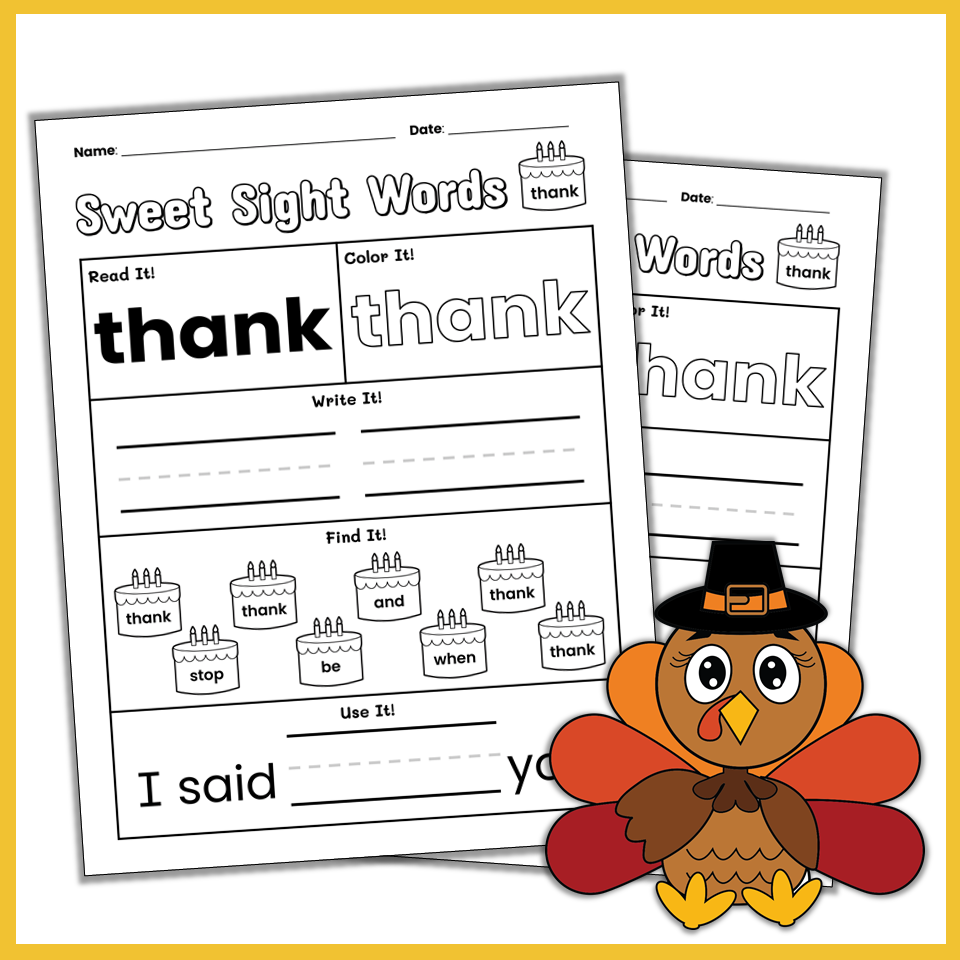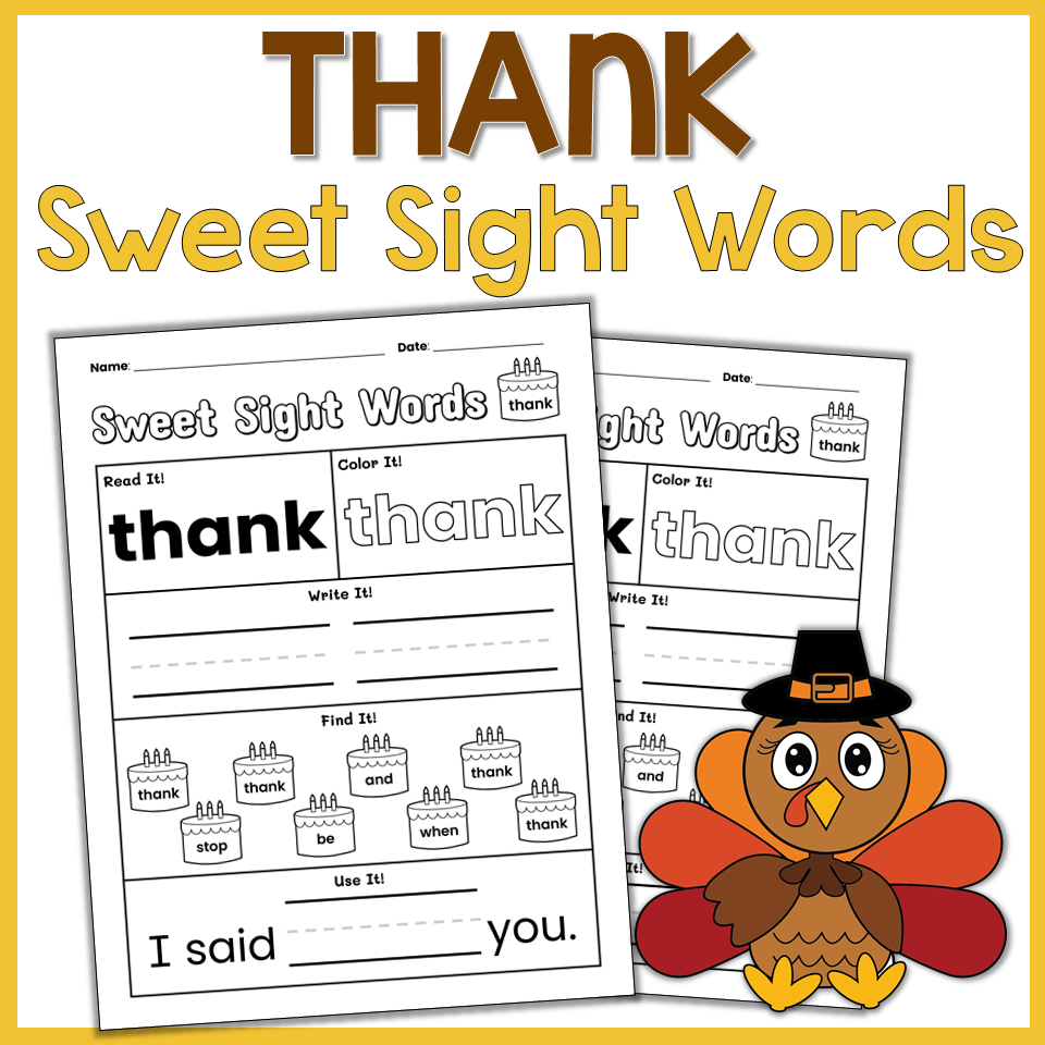 Practice the Sight Word "Thank" with this Fun Thanksgiving-themed worksheet!